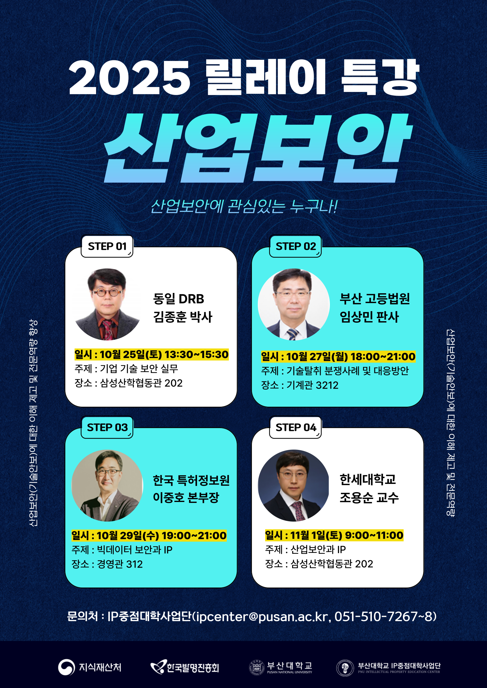 10월 25일부터 진행되는 산업보안 릴레이특강에 많은 관심 바랍니다.