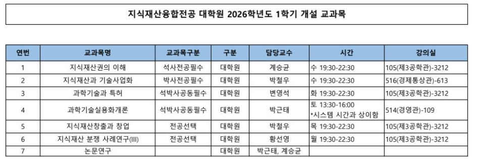 2026학년도 1학기 대학원 교과목 및 수강신청 일정 안내