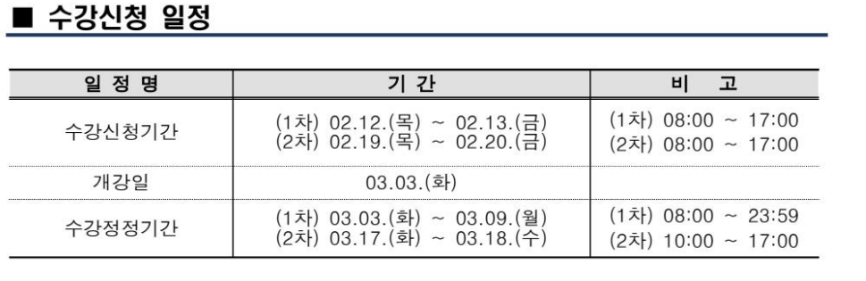 2026학년도 1학기 학부 교과목 및 수강신청 일정 안내