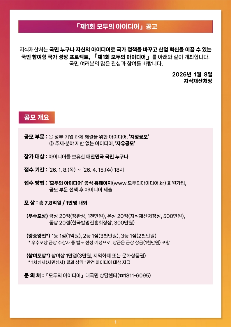 홍보 - [지식재산처/한국발명진흥회] 모두의 아이디어 안내 (~4/15)