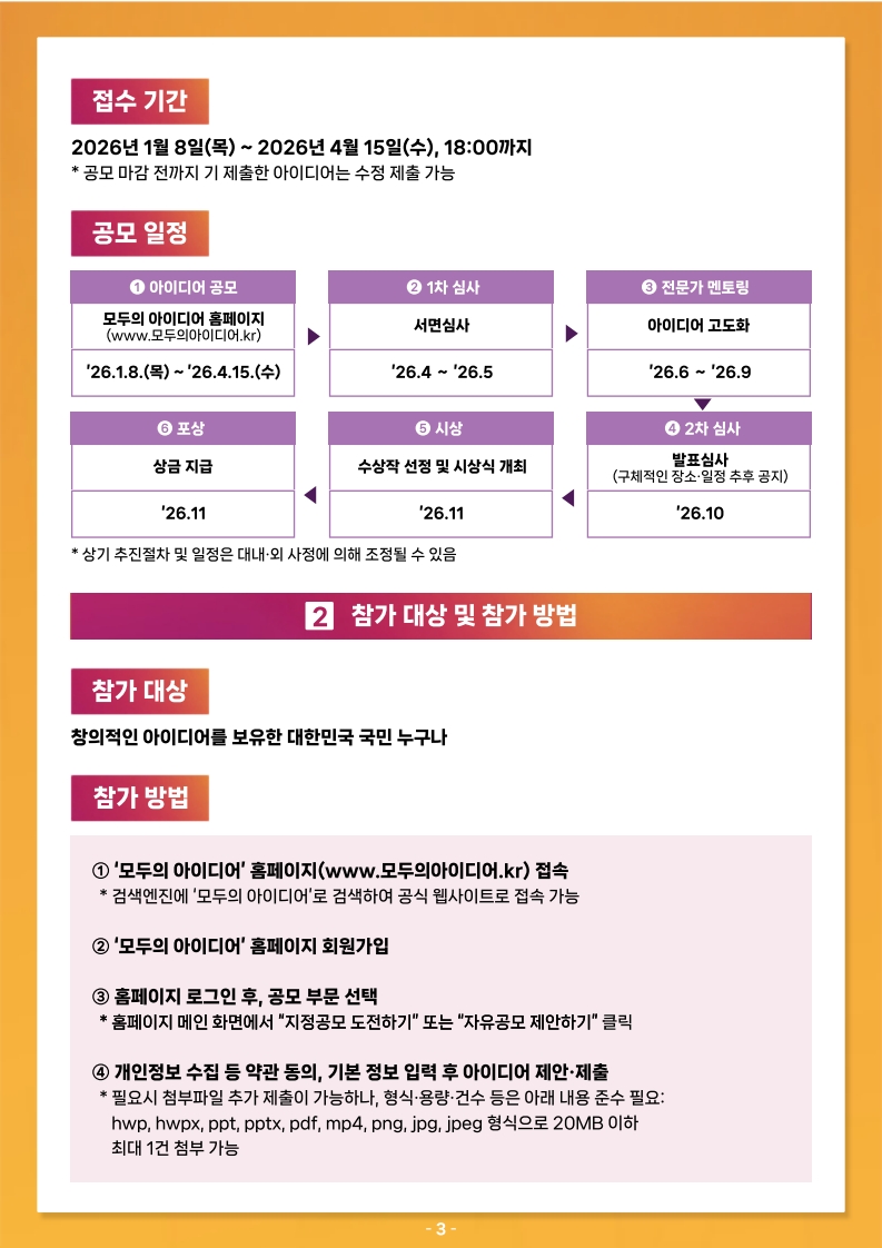 보다 자세한 내용은 모두의 아이디어 공고문을 확인해 주시기 바랍니다.( 모두의 아이디어(ipmarket.or.kr))